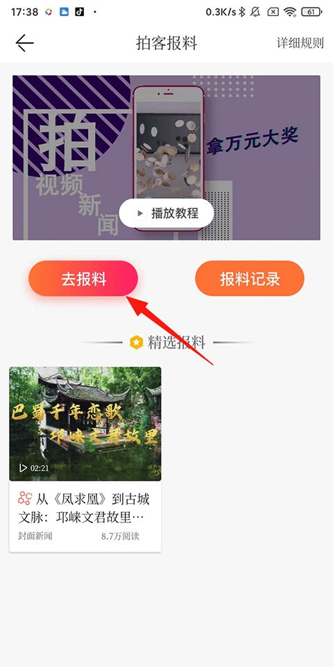1、打开封面新闻APP,点击【我的】-【拍客报料】;