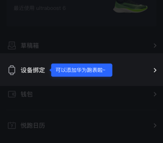 1、打开悦跑圈APP,点击「我--设备绑定」