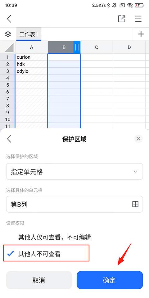 3、【设置权限】-【其他人不可查看】,点击【确定】即可。