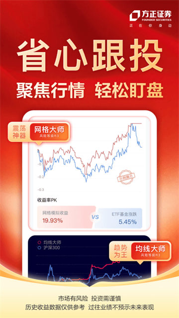 小方证券App是方正证券精心打造的一款移动投资平台,是广大用户的贴心“移动财富顾问”。该APP不仅提供沪深港市场实时行情与前沿财经资讯,更能从海量信息中为您筛选、提炼,提供精准的投资指导。无论是极速便捷的股票交易,还是多样化的交易品种与形式,小方证券App都能满足您的需求。另外,平台内置多层风控体系,确保交易过程既易用又安全。选择小方,就是选择数百万投资者共同信赖的伙伴,让您的投资决策更从容,财富管理更高效。