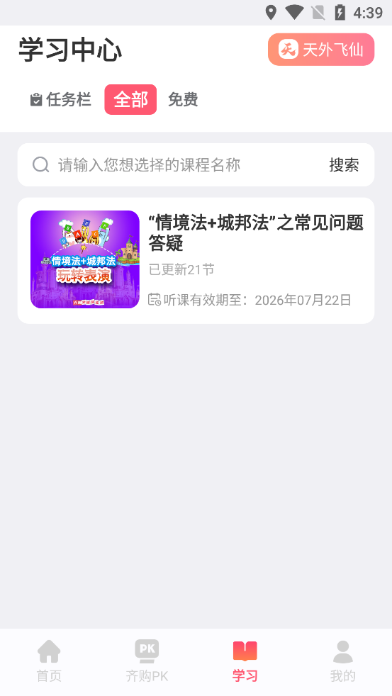 4、购买成功后,点击学习板块,点击课程