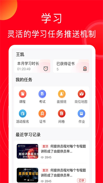 App有很多特色功能,比如线上点播和直播课程、混合式培训模式、人脸识别监考等等。特别是人脸识别监考这点,虽然看起来有点严格,但确实能防止一些人偷懒或者作弊,保证了学习的真实性和效果。