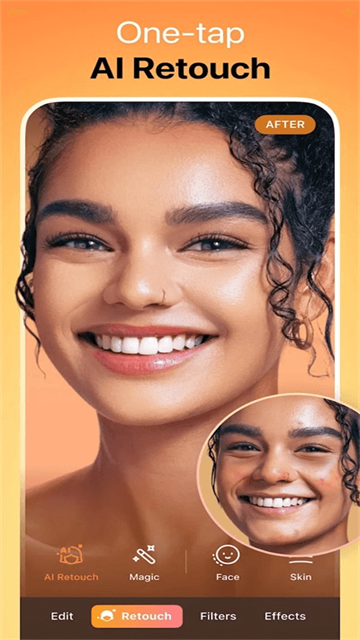 AirBrush是一款功能强大的自拍编辑应用,操作简单又不失创意。它提供了多种手动修图工具,比如祛痘祛斑、美白美黑、虚化背景等,让自拍更自然真实。特别是纯手动操作模式,满足了个性化需求,避免了一键美颜的千篇一律。