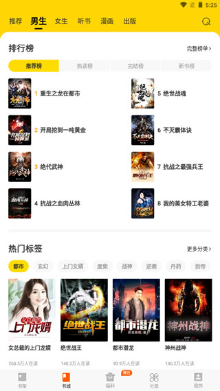 2、进入书城首页,这里推送了各种类型小说的精品佳作