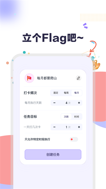 制定专属计划打卡清单,规划每天/周/月需要打卡次数或时长,按时完成设定目标,培养高效的时间管理,让自律成为你的习惯。