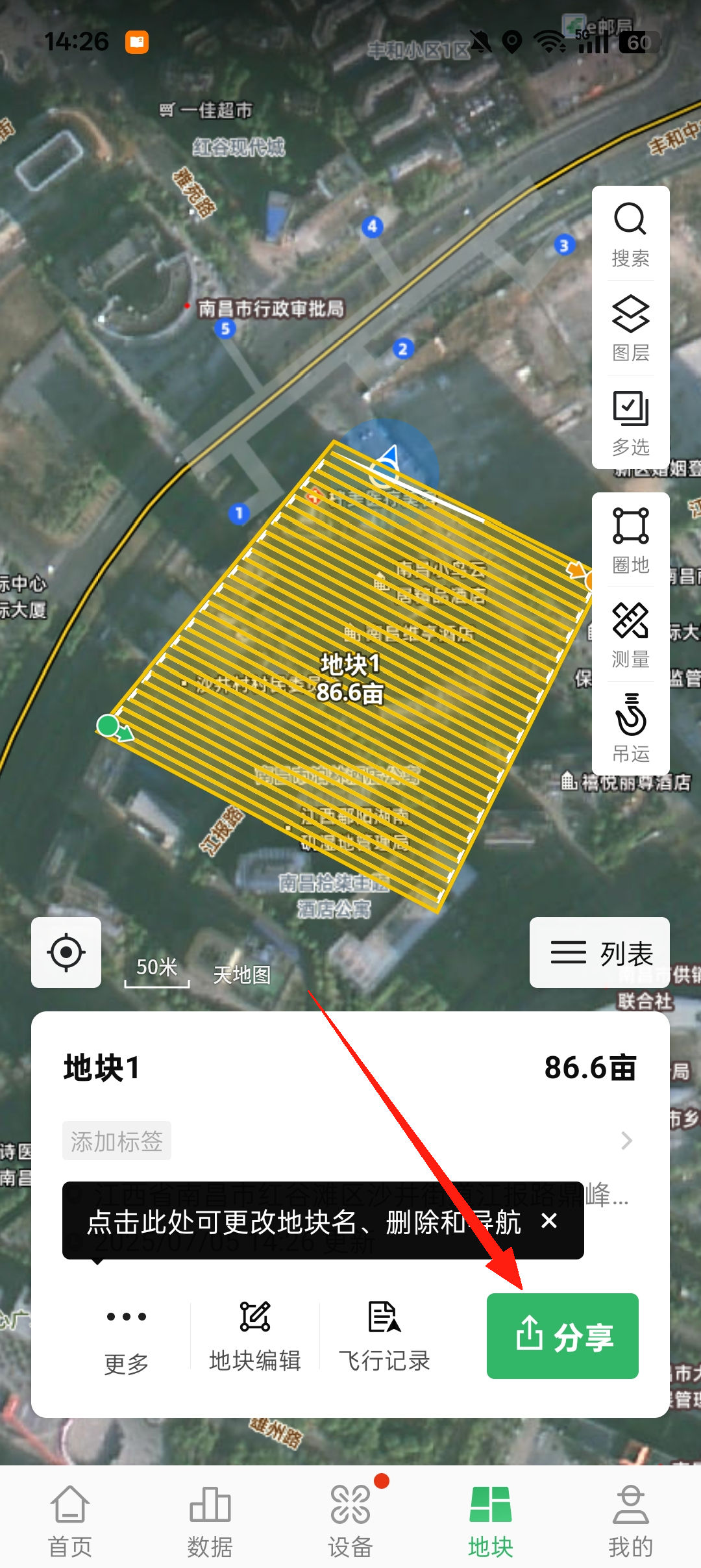 2、然后选择要分享的地块点击【分享】