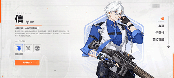 看似冷漠无情,却无比真诚直率的信,是欧泊的搜查一班班长。曾遭遇兄长背叛的他,为了追逐背后的真相,不放过任何蛛丝马迹。随身携带的脉冲雷达“守望之眼”,还有他坚定的意志,是他最强大的武器。