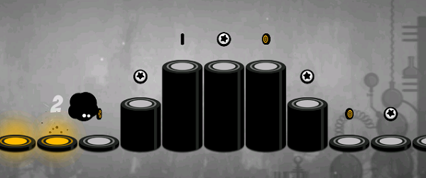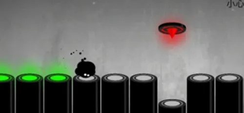 遇到一个尖刺时候比较简单,只需要找准小墨球下落的时机点击屏幕就可以完成跳跃,如果太早或者太迟的话就会碰到尖刺死亡。遇到两个尖刺的话就需要连续点击了,找准节奏的同时也需要把控好手速。