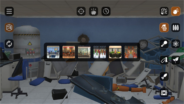 房间毁灭模拟器最新版是一款非常解压的小游戏,游戏采用了非常精美的3d画面设计,整个游戏风格虽然比较简约,但玩起来绝对刺激,热度在全球来说也是居高不下。在这里玩家将使用不同种类的武器和“神”一般的能力进行各种破坏,虽然游戏画质略有瑕疵,但动态效果和光影特效的呈现,堪比真实,给玩家带来非常好的视觉冲击。游戏中玩家将以第一视角进行各种破坏模拟,不同种类的武器及道具提供,则能让你充当“造物主”一般的神奇能力,期间你可以选择瞄准来射击假人,也可通过控制重力使房间内的物品进行悬浮,非常的解压好玩。