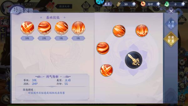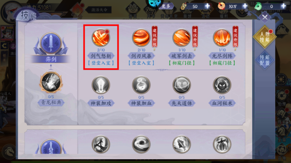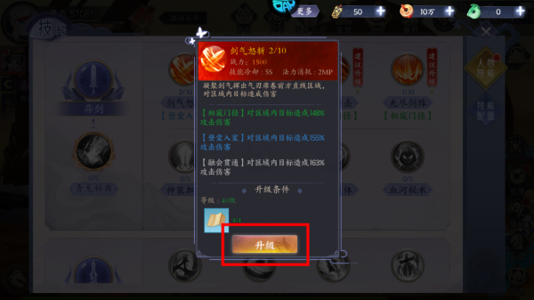 3、可查看相关技能的详细信息,当拥有一定道具时,可点击进行升级