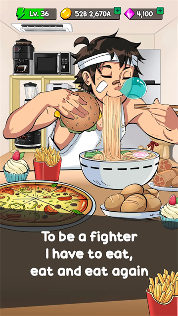 1、不断的去吃各种食物来增强您的能力,变成世界上知名的食物斗士