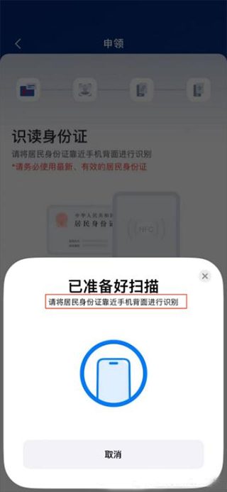 第 4 步:身份证扫描成功后,按照指引进行人脸识别;