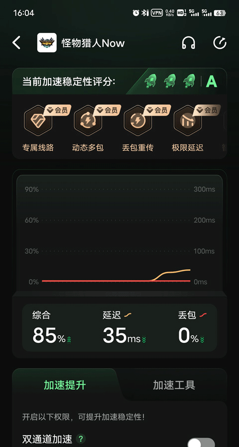 1、在本站下载安装怪物猎人Now官方版,然后打开奇游手游加速器,找到该游戏,点击右侧加速;