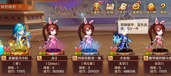 3、斗魂场挑战胜利后,如果被挑战者排名高于挑战者时,双方会互换排名。