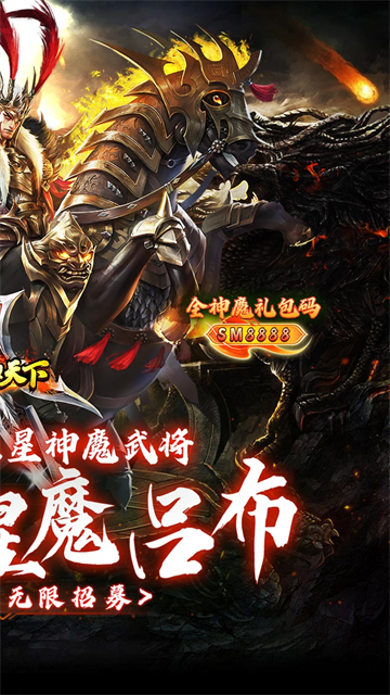横扫天下(五星神魔全免)是一款三国神话题材创新策略卡牌手游!游戏保真0.1折,每日免费送6480元无门槛代金券,还有创角福,利顶级金将/专属装备自选,开局一统六国,还有超多历史名将等你来招募!经典战役元素,精妙绝伦立绘,酷炫霸气技能,轻松享受萌版三国的乐趣。乱世出英雄,谱写新传奇!