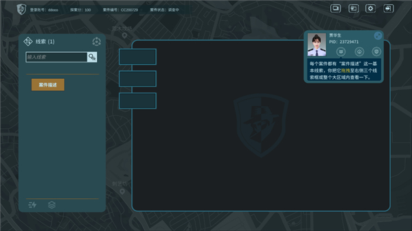 在破解案件的过程中,你有时需要完成一些线索的特殊操作,比如推理出人物的动机来完成针对人物线索的“搜查令”、推理出合理的时间来“调取监控”进行查看、推理出加密线索的正确的密码“破译密码”后可查看加密的内容等等。比较人性化的设计是,当你毫无头绪的时候可以向系统发起求助,系统会给予你一定范围的提示,不过会扣除一定的探案分。