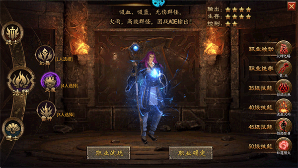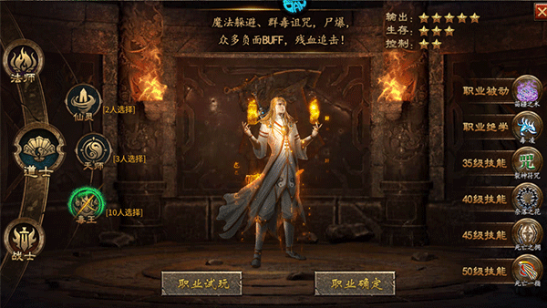 极武尊1.85微变传奇是一款复古微变风格的多职业传奇冒险手游。游戏在经典战士、法师、道士三大职业基础上,进一步细分为九大特色流派,各具独特技能与战斗风格。战士系分为剑神、武圣、战神,侧重近战输出与防御;法师系包括炎魔、雷神、幻舞,擅长元素魔法与控制;道士系则涵盖毒王、天师、仙灵,兼顾召唤、辅助与毒术。这种精细化职业划分不仅丰富了角色养成路径,也提升了战斗策略性与团队配合深度,为玩家带来更丰富多样的传奇冒险体验。