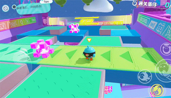 1、巧用滚蛋夺第一竞速的一大难点就是障碍物,除了翻转的地板、摇晃的摆锤,移动的方块和向后的履带等等,都是阻碍我们速通的因素。对于普通的障碍物,找好时机可以慢慢跳过去,但是最快的方法肯定是直接滚起来。而且在“滚蛋”模式下,由于我们的速度变快了,跳跃的距离也会相应的变远,所以在面对一些需要跳跃(或者等待时间较长)的障碍时,可以直接远跳过关。