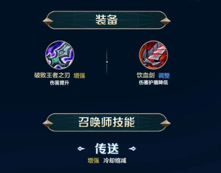 陷阵战士的R(4)技能强化装,施放R(4)技能后触发8秒攻速加移速爆发,适合依赖R(4)技能进场或收割的英雄。