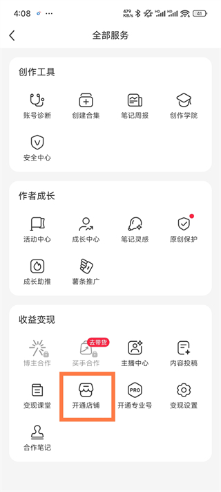 4、点击开通店铺
