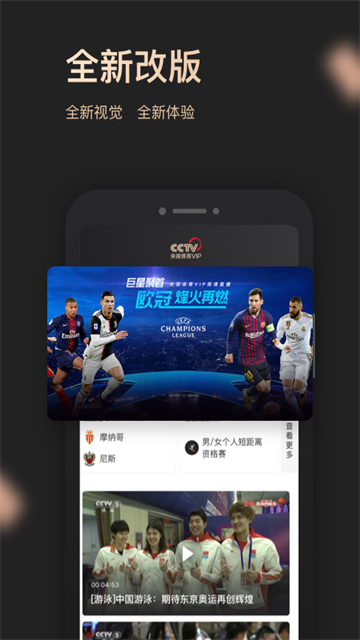 央视体育VIP是中央电视台 CCTV 旗下新媒体机构央视网专门为中国体育迷朋友重磅推出的一款高清互动体育内容平台,该平台提供了海量赛事,有CBA、德甲、法甲、欧国联、羽毛球、网球、全运会、中超、美洲杯、排球、乒乓球、冰雪运动、搏击等各大赛事直播,几乎所有重要赛事的视频资源,甚至电视台未转播的比赛都可以在这上面看到,如果你没有这款软件还真不能说是真正的球迷。