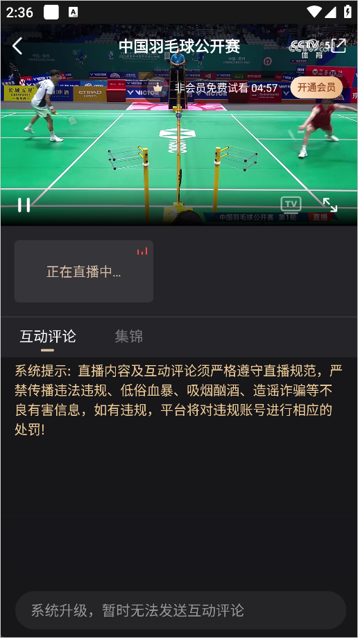 加入央视体育VIP会员,可畅享免广告、高清赛事直播等会员权益