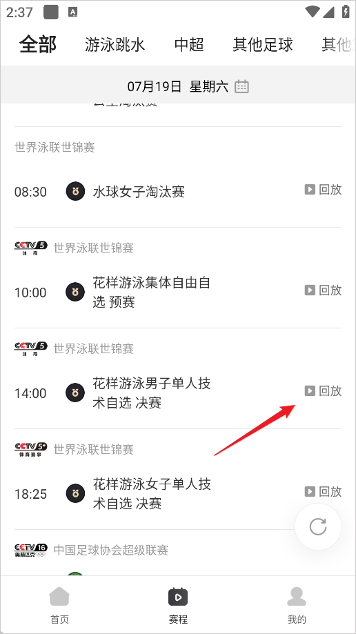 3、如果想要观看已经结束的赛事,找到该赛事点击回放