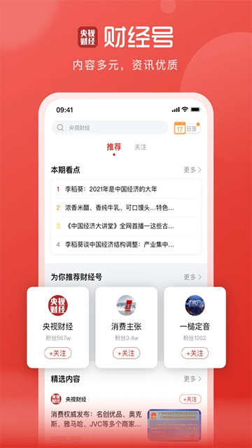 央视财经是中央广播电视总台推出的权威财经资讯平台,凭借央视强大的新闻采编体系和专业数据渠道,为用户提供全景式财经信息服务。平台以专业财经报道为核心,涵盖宏观经济、金融市场、产业动态等全方位内容,同时辅以生活消费等实用资讯,构建了层次分明的信息架构。