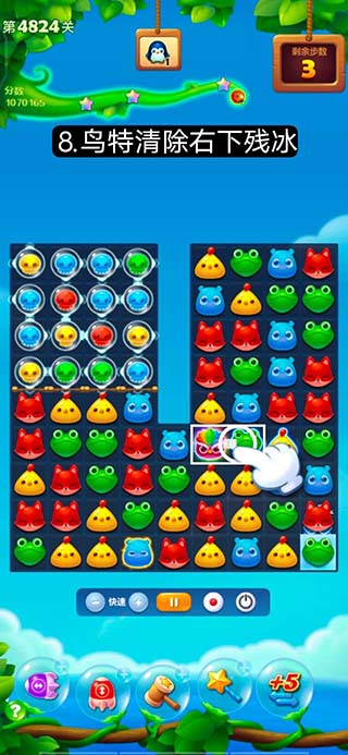 4、巧用魔力鸟:观察当前场上及任务色块,有限步数内优先消除大面积色块,触发新色块刷新。魔力鸟就像“洗牌”工具,不要囤积,灵活使用可能带来幸运通关。
