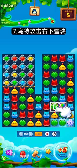 6、蜗牛关卡:蜗牛会在固定回合出现,务必让它移动远离初始位置,避免叠加卡死。