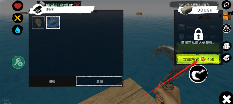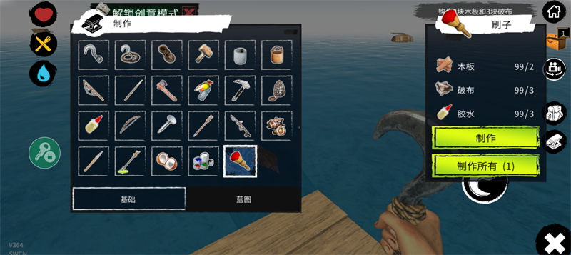 2、获得各种资源后,来改善你的木筏生存环境