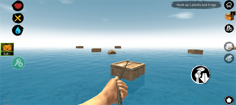 1、进入游戏后,你需要先用钩子勾取资源包获得各种资源
