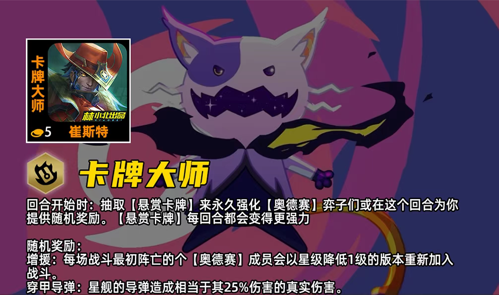 星守核心卡,神器有卢登更佳,后期来了萨勒芬妮装备也不需要拆,可以让萨勒芬妮当重伤工具人,至于为什么不让四费卡金克丝当主C,只能说没阿狸好用