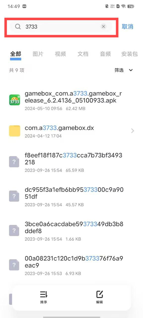 2.在文件管理的最近文件记录中,找到3733的图标,点击安装即可。