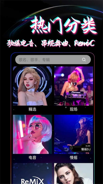 中文DJ舞曲、英文DJ舞曲、3D环绕舞曲,日韩舞曲、车载DJ、苏荷、喊麦、电音DJ、节奏、Remix、网络DJ、网络红歌,只有想不到,没有找不到。