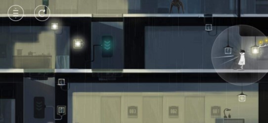 第一步:进入游戏画面,直接往右边走,用手指将前方的灯光拖到黑色灯柱处,然后去最右边吸收灯光,走到掉下来的灯柱处进入下一个场景。