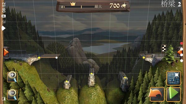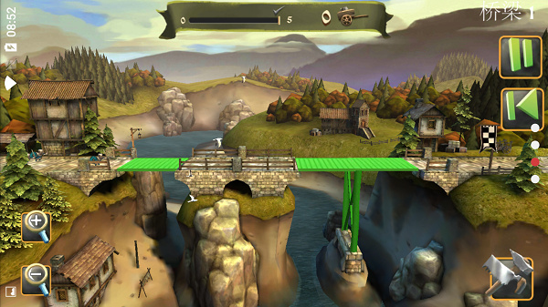 本作的重点在于动脑而不在于动手,所以操作方面是相当简单的,玩家只需通过点击选择建筑材料,然后滑动屏幕摆放它们便可轻松完成游戏操作,流畅的操控手感,主要考验的是大家的无限智慧,如何搭建好一座牢固、结实的桥梁,防止马车和人通过时不会坍塌呢?