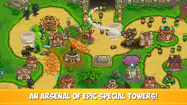 * 八种全新专业防御塔升级!你可以用弩兵堡垒、强大的圣殿骑士、亡灵甚至地震机切开、烤焦和践踏你的敌人 -- 嘿,我们告诉过你会动摇一切的。