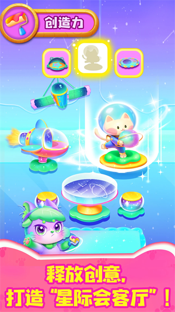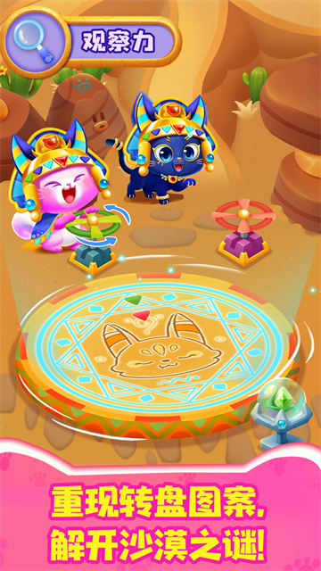 游戏里有好多有趣的互动环节:带着猫咪去户外探险,给它们编舞,做饭,找玩具,甚至还能给它们看病!这些活动不仅能让孩子玩得开心,还能锻炼反应力、观察力和想象力。比如有个“守卫猫”的关卡,得在光束没打中时抢回光球,这可考验手眼协调;还有让树枝旋转喂食的环节,得仔细观察才能成功。