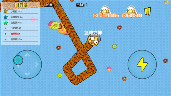贪吃蛇疯狂乱斗是一款超好玩的对抗手游,里面有很多搞笑又魔性的元素,比如各种搞怪的皮肤,像爱鲲、熊猫馆长、嘎子这些角色都能解锁。游戏开始时操控小蛇去挑战其他蛇,把它们吃掉就能变大,最后轻松赢比赛!最有趣的还是双人模式,可以叫上小伙伴一起配合,感觉特别有意思。