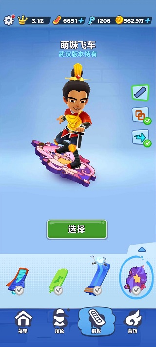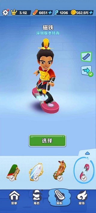 在道具槽的最上方有一个滑板一栏,当收集能量满格后就会得到一次滑板冲刺效果。
