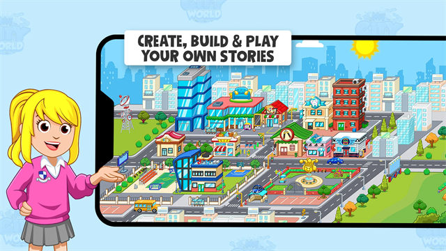 玩城市游戏,参观商店、酒店、学校、海滩等等!更改天气:雪、风、太阳或雨,或选择白天或黑夜。随心所欲地创造和玩耍。每个娃娃屋都有新的东西。如果您曾经梦想在一个地方拥有所有“我的小镇”和“我的城市”游戏,那么现在就可以实现。世界上最好的角色扮演游戏。