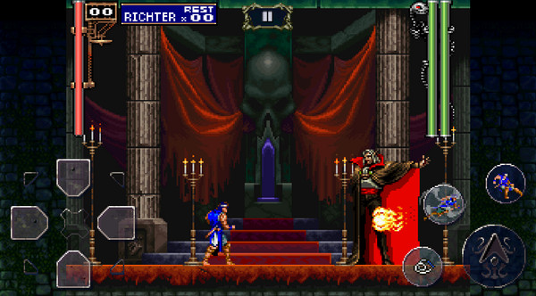 恶魔城月下夜想曲是根据同名动作冒险游戏移植而来的一款闯关动作手游,该作是恶魔城系列公认最完美的一作,玩家将继续扮演里希特前往恶魔城猎杀吸血鬼之王,并且本作还支持玩家亲自操控吸血鬼伯爵阿鲁卡多去斩杀他的父亲德古拉,阿鲁卡多能够召唤各种使魔配合自己的技能碾压BOSS,即使是手残党也能轻松享受战斗探索的乐趣。现在科乐美将其移植到移动平台,保留了原汁原味的内容,增加了便于手机操作的方向键、释放技能按钮,让玩家们再一次体验当年探索恶魔城的魅力,游戏中精良的战斗系统、合理的迷宫探索设计、充满魅力的黑暗幻想美术设计,优美的音效等等特色内容直到现在都能够让人感到眼前一亮,并且游玩过程充满了乐趣,不管你有没有接触过恶魔城系列,本作都是入门、重温的绝佳作品!