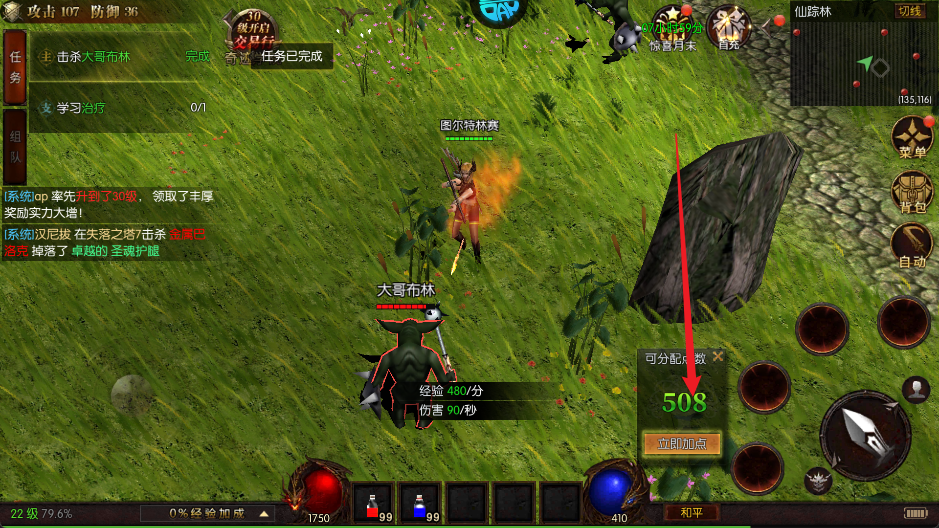3、随着怪物的不断击杀,你不仅能完成任务,还能获得大量的技能点,喜欢猛攻的兄弟可以把力量拉满,副加敏捷和体力