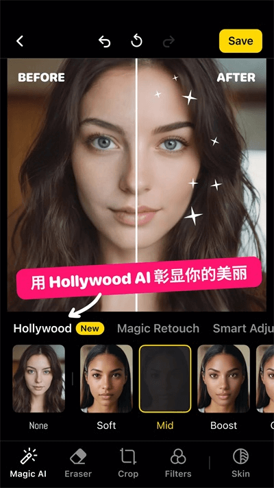 - 磨皮功能,使皮肤更自然,清晰,不假面