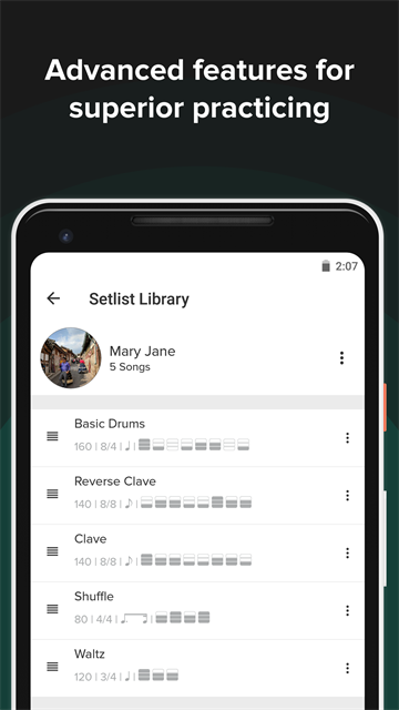 曲库云同步:您的歌曲和曲目将自动备份并同步到所有设备上,以便您随时在节拍器中播放。