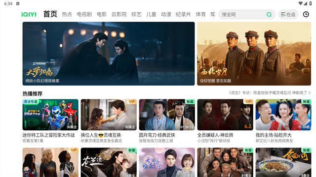 1、打开爱奇艺Pad版,在首页滑动想要下载缓存的视频或是在上方搜索栏搜索,点击进入播放详情页面;