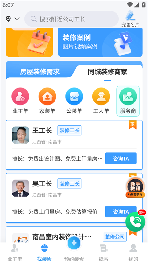 海量装修需求,工长、装修队直面装修业主,施工直达!