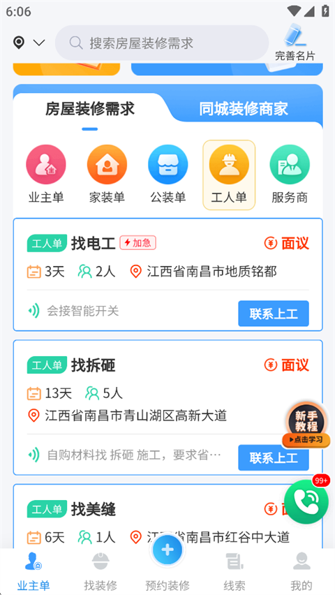 如果用户是装修师傅,可以在这里找装修单子