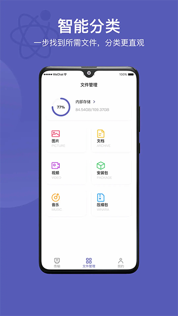 Hi传输助手app除了是传输助手之外也是管理助手,它还能管理各种类型的文件,采用智能分类直观又方便,一步就能找到所需文件,你也来试试吧!
